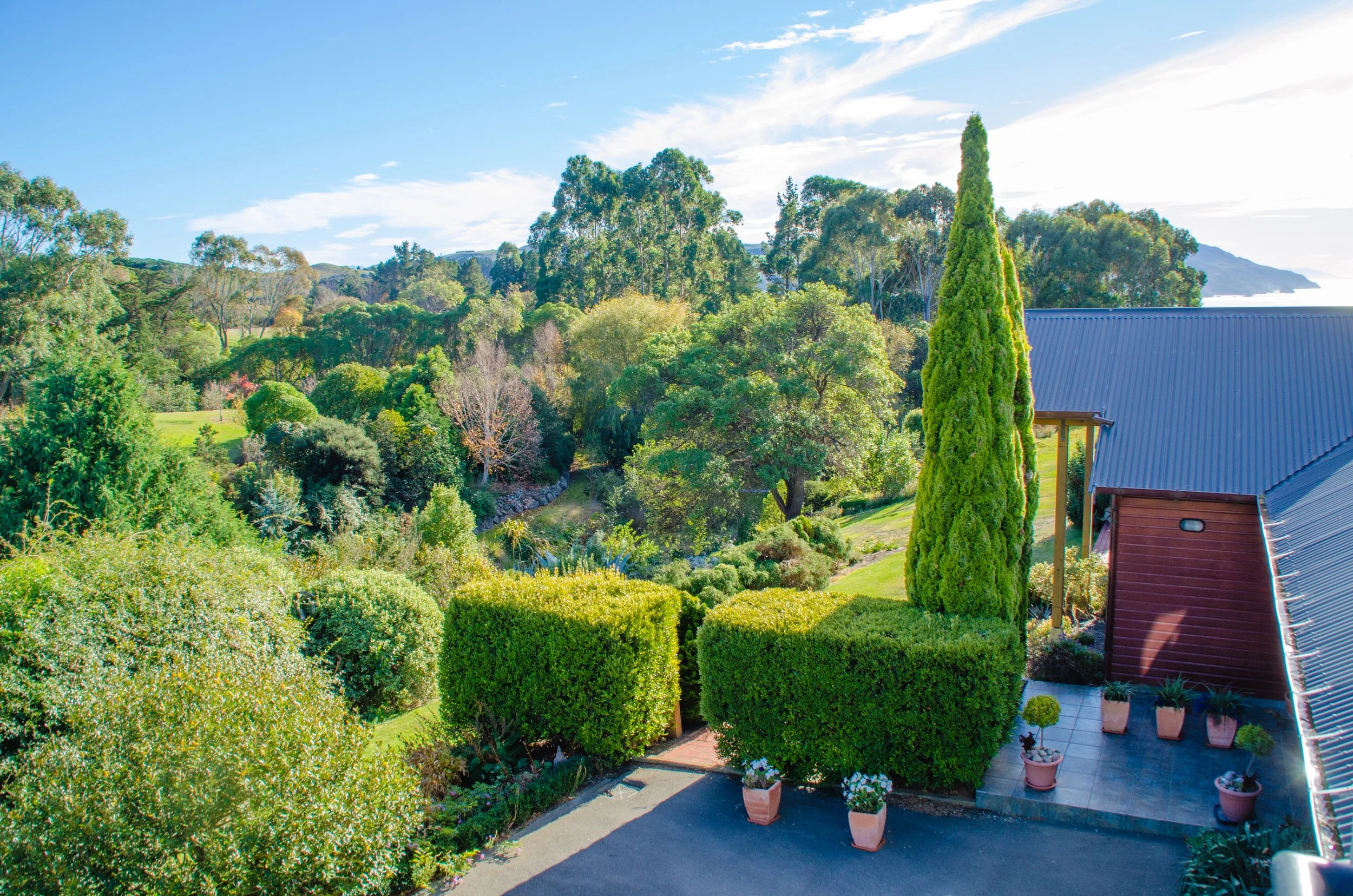 Our gardens offer views from gore bay to Kaikoura Peninsula.
